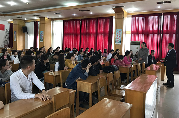 上午,刘群英一行前往安庆市立医院慰问实习生和见习生,召开师生座谈会并与他们亲切交谈。座谈会上,刘群英认真听取了学生们关于实习、见习、生活、就业等情况的汇报,征询了学生对实习医院的意见和建议,并且有针对性地对学生在实习期间遇到的问题给予指导。在听取学生汇报考研和就业情况的汇报后,他表示,安庆市立医院是一个能培养人才的高水平医院,对学校教学、科研、就业、人才培养提供了巨大的支持,感谢医院领导和老师对实习生和见习生的教育、管理和服务。