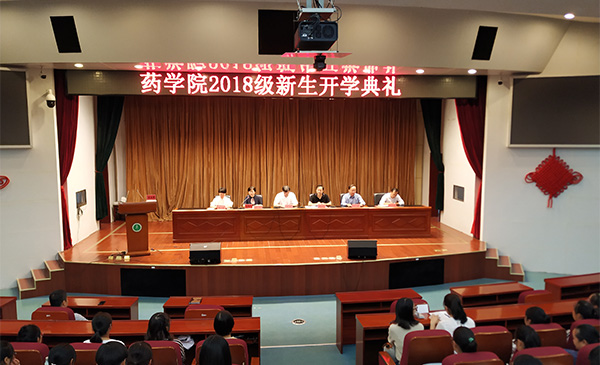 9月30日上午,药学院在图书馆第一学术报告厅举行2018级新生开学典礼,校党委书记李俊教授出席会议并讲话。
