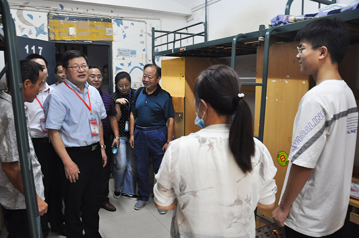 在该校区护理学院迎新现场,顾家山慰问了迎新接待点的工作人员和大学生志愿者,并走进学生宿舍同新生和新生家长亲切交谈。在检查迎新环节时,顾家山指出,迎新工作是新生入学教育第一课,要在服务细微之处显真情,用心提升服务育人质量,做到让家长放心、让学生满意。