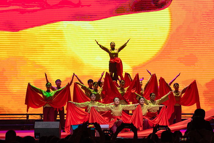 整场晚会共14个节目,高潮迭起,展示了我校师生丰富多彩的文艺生活和积极向上的精神风貌。老师和学生们用自己的实际行动向新中国70岁生日献上了最诚挚、最美好的祝福,表达了我校广大师生不忘初心、牢记使命,以永不懈怠的精神状态和一往无前的奋斗姿态,为早日建成高水平医科大学而努力奋斗的决心。(新闻中心)