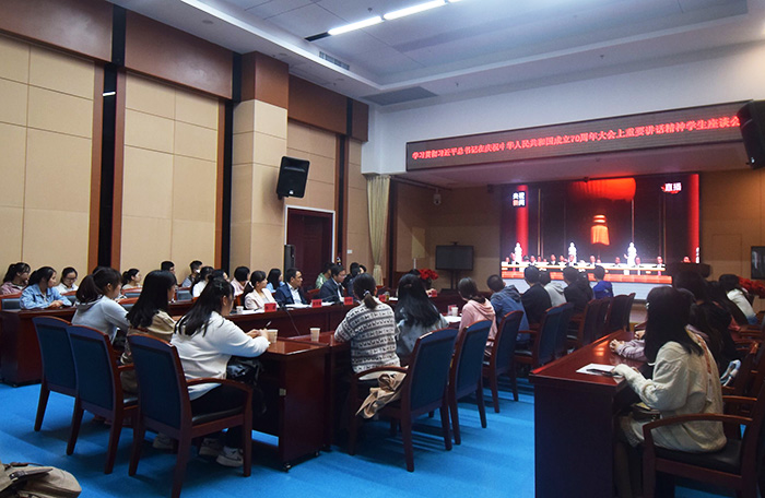 10月12日上午,我校在知行楼一楼会议室召开学习贯彻习近平总书记在庆祝中华人民共和国成立70周年大会上的重要讲话精神学生座谈会。会议传达了习近平总书记在庆祝中华人民共和国成立70周年大会上的重要讲话精神。校党委副书记刘群英出席并讲话。