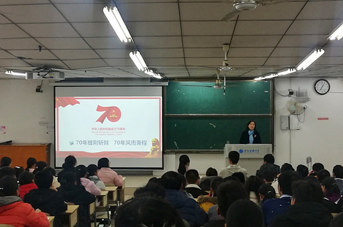 12月3日晚,校长曹云霞为2019级康复治疗学、眼视光、预防医学专业的175位同学,讲授了题为《壮丽七十年,奋斗新时代》的“形势与政策”课。
