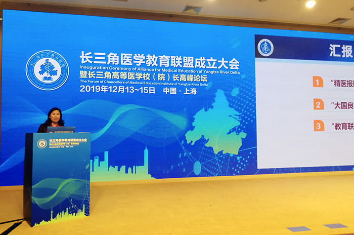 12月14日,长三角医学教育联盟在上海交通大学医学院正式宣告成立,我校以创始单位身份参与联盟创建并当选联盟副主席单位。此举标志着我校进一步融入长三角教育一体化进程,为推进高水平医科大学增添了新的动力,搭建了新的平台。上海市人民政府副市长陈群出席见证。校长曹云霞出席联盟成立大会并作专题报告。