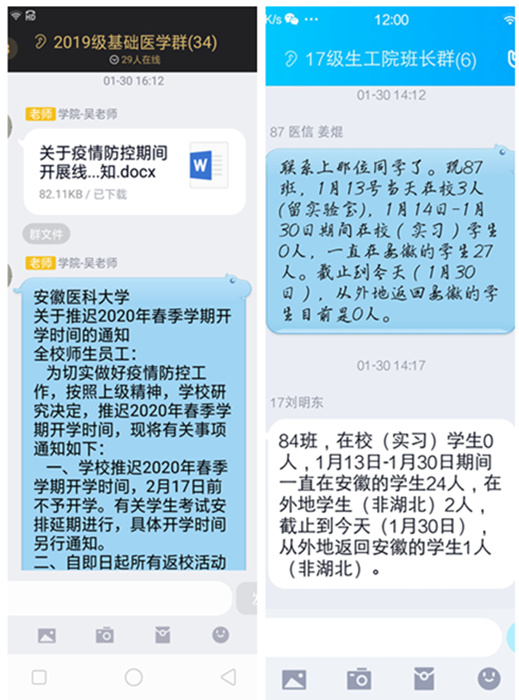 各学院辅导员利用网格化管理,准确摸排了解每一名学生的身体状况、出行情况和思想动态,建立详细防疫台账,引导实习生把实习工作岗位作为抗击疫情的战场,引导在家学生把疫情科学宣教作为防控疫情的积极手段,在党和政府坚强领导下,坚决打赢疫情防控阻击战。