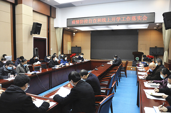 2月26日上午,学校召开专题会议,以“抓落实”为主题,对新冠肺炎疫情防控自查和线上开学工作进行落实部署。校党委书记顾家山主持会议并讲话,校长曹云霞,副校长余永强、肖圣龙、汪凯、吕雄文出席会议。