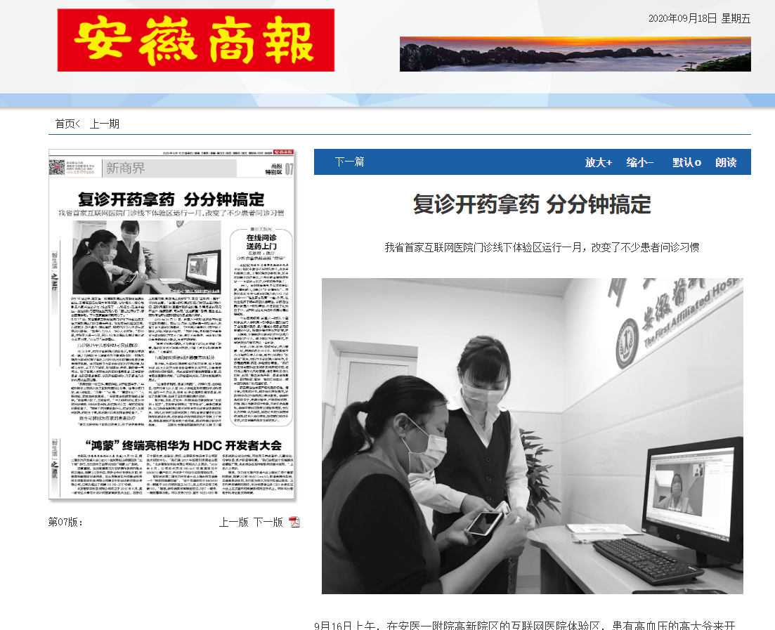 安徽商报/安徽新闻网:复诊开药拿药 分分钟搞定
