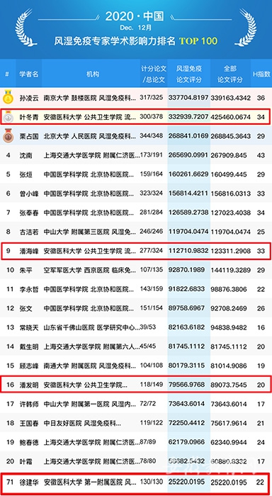 据悉,“全国风湿免疫病专家学术影响力百强排名”是全球学者库基于论文的专家学术影响力评价方法、指标体系和数学模型,按照总积分进行排序,同时也展示专家的全部论文数及H指数。该排名有助于学界同行相互了解、学习、借鉴科研成果,共同推动学科的进步和发展。(毛丽娟 特约通讯员 王晶晶)
