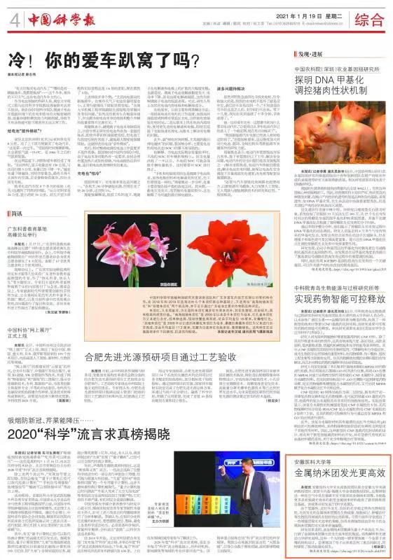 中国科学报、中国教育新闻网、安徽网:金属纳米团发光更高效