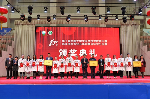 大赛中,来自46所高校的参赛队伍展开了激烈角逐,展示了深厚的理论功底和高超的实践技艺,显示了良好的应变能力和高度的团队精神,呈现了一场场精彩的医学盛宴。经过2天的高水平比拼,南昌大学、福建医科大学最终斩获本次华东分区赛特等奖,同济大学、蚌埠医学院、浙江中医药大学获一等奖,赣南医学院、温州医科大学、南京大学、南京医科大学、山东大学、山东第一医科大学获二等奖,上海健康医学院等34所高校代表队获三等奖。大赛还评选出单项奖20项。我校获最佳风尚奖,并与团体前11的参赛队一同晋级全国总决赛。