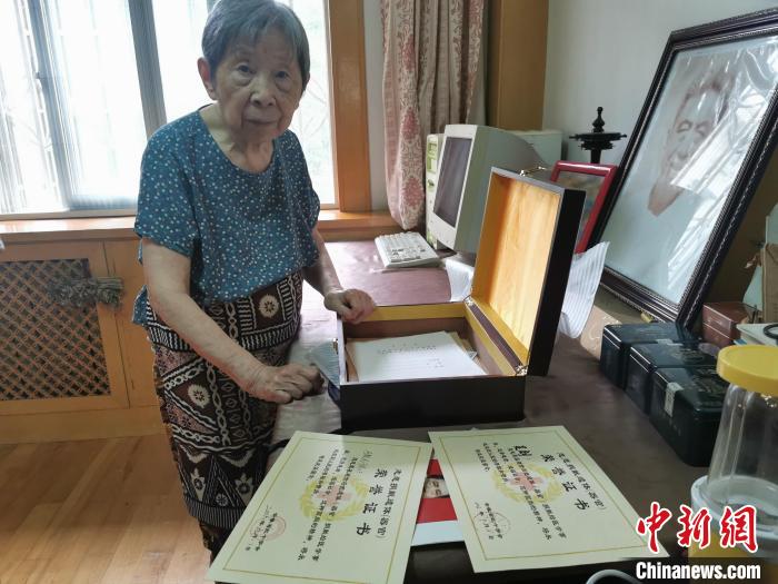 马毅兴奶奶拿出她与爱人吴朗的志愿捐献遗体(器官)申请登记表和荣誉证书。 储玮玮 摄