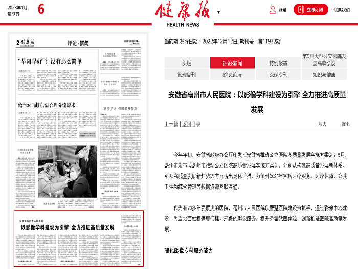 作为有70多年发展史的医院,亳州市人民医院以智慧医院建设为抓手,通过影像中心建设,为当地百姓提供更便捷、环保的影像服务,提升患者就医体验,创新推进医院高质量发展。