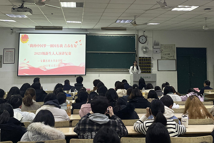 2023年12月27日晚,法学院举办“我的中国梦——强国有我,青春有为”人人演讲复赛。校党委常委、组织部部长李阳新,宣传部常务副部长单永强及护理学院党委书记薛磊受邀担任评委,并为获奖选手颁奖。该院党委书记夏会林、院党委副书记刘燕出席活动。