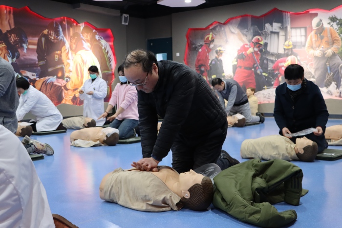 1月17日,实验教学中心与校医院就自动体外除颤仪(AED)的使用及心肺复苏术(CPR),共同开展专项急救培训交流活动,以进一步推进做好我校急救教育试点工作,提升教职人员应急救护培训能力,保障校园急救培训工作顺利开展。校医院近二十名教职工参加培训交流。