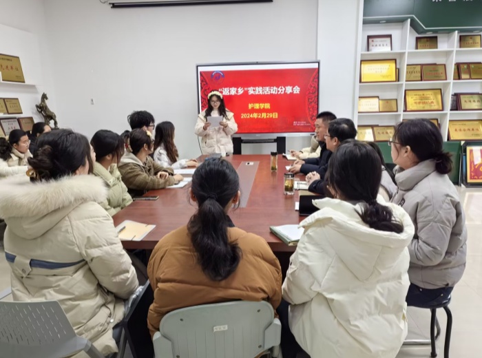 2月29日,护理学院召开社会实践总结分享会,师生齐聚一堂。同学们谈感受、谈收获、谈未来,分享实践故事,总结实践经验。该院党委书记薛磊、院党委副书记王磊出席活动。