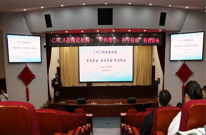 4月15日晚,CACA指南进校园——“中西整合、科学防癌”科普讲座在我校梅山路校区图书馆第一学术报告厅举行。中国抗癌协会中西整合专委会执行主任、肿瘤传统医学专委会主委李平教授受邀担任主讲,校教务处处长郝加虎主持讲座。