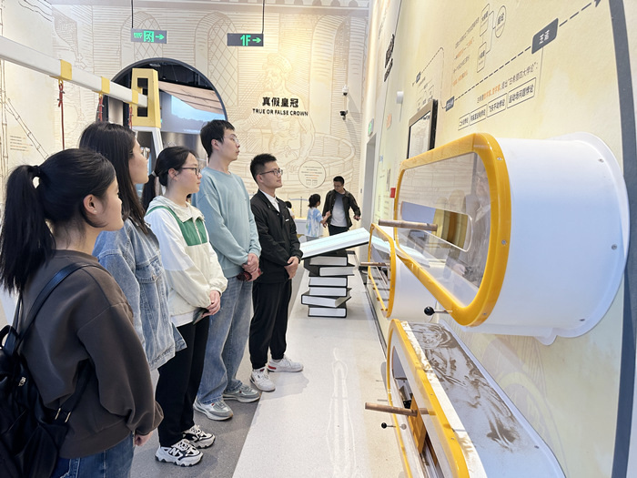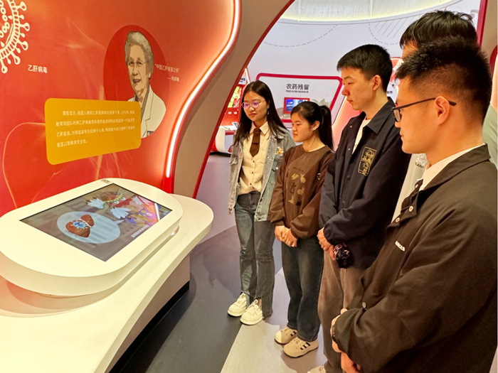 在“健康之本”展厅,同学们身临其境般感知生命的奥秘。展品从细胞分裂到器官形成,再到生命衰老和死亡,全面细致揭示了生命的传承与演变,同学们或驻足观看,或亲身体验,或互动交流,更加直观感受到生命的厚重,更加深刻体会到“竭尽全力除人类之病痛,助健康之完美”的责任使命。