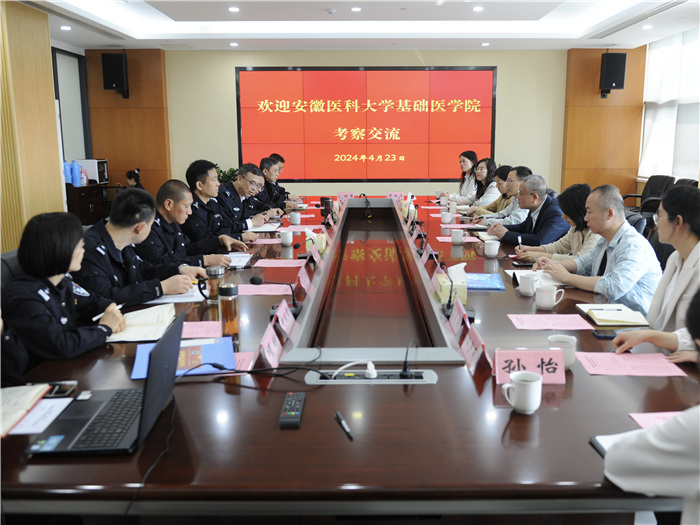 4月23日,基础医学院赴合肥市公安局刑警支队考察交流,签订战略合作协议并为实践基地签约揭牌。该院党委书记储兵、合肥市公安局刑警支队政委姚钧出席签约揭牌仪式,院领导班子成员、合肥市公安局刑警支队相关负责人参加座谈交流。