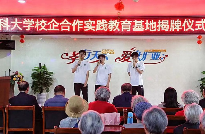 挂牌仪式后,安徽省体育舞蹈协会、辖区社居委、振亚养老的员工和我校学子共同为老人送上了精彩的文艺汇演。演出后,学校运动康复专业及部分临床医学(“5+3”一体化)专业学生在教师指导下,前往“安宁疗护工作坊”开展了老年人运动康复诊疗服务。同学们热情高涨,把所学知识融入到专业实践过程中,受到老人的一致好评。
