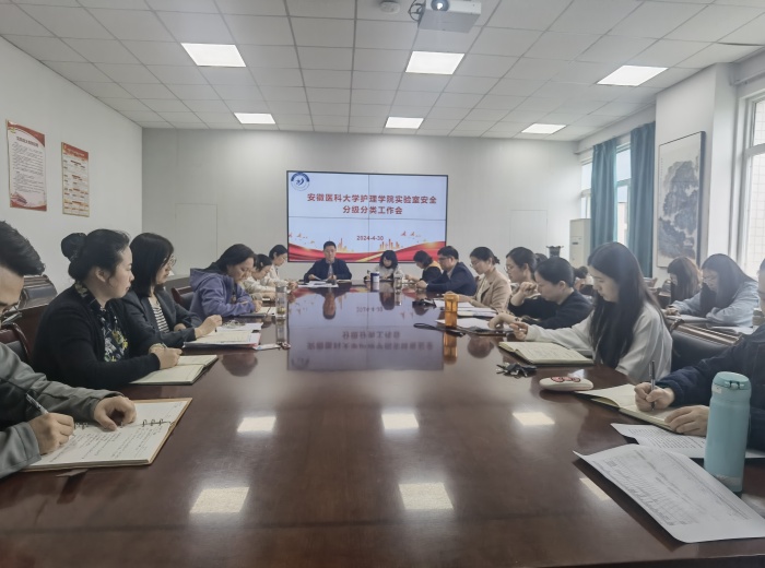院领导班子成员、各部门负责人、各教研室(中心)主任、护理学实验教学中心和护理学科学研究中心全体人员参加会议。会议就学院实验室安全分级分类工作有关事宜展开了深入讨论。