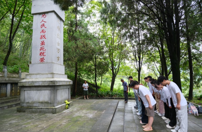 队员先后来到歙县方璧纪念馆、岩寺新四军军部旧址纪念馆、小练革命烈士墓、萌坑革命烈士英雄纪念碑、中国工农红军北上抗日先遣队纪念馆,沿着历史的痕迹在纪念馆中追思革命先烈。在烈士纪念碑前,队员们打扫陵园,集体默哀致敬,悼念共产主义战士;在纪念馆内,队员们认真观看珍贵图片与历史文物,回顾了那段血与火的岁月。在萌坑村,大家认真听老支书吴正光同志讲述了新四军帮群众挑水、铺路、修茅屋的故事。吴正光还勉励大家:“你们要忠诚于党,坚定共产主义理想信念,感党恩、听党话、跟党走。”