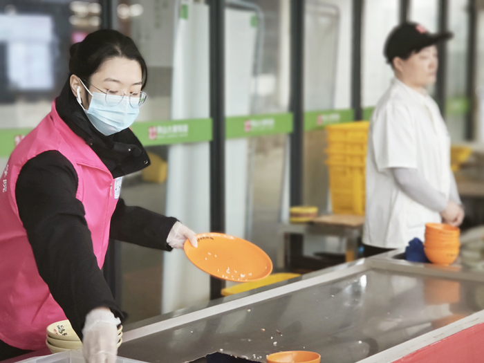 “实”字为基,爱心帮厨强信念。学院组织入党积极分子在食堂开展为期一个月的“爱心帮厨”活动。学生身穿志愿服,穿梭在就餐区、回收处等区域,回收碗碟、清理餐桌、整理桌椅,为就餐师生营造良好的用餐环境。大家在劳动中体会到了食堂工作人员的辛勤付出,也进一步树立了“劳动最光荣、劳动最崇高、劳动最伟大、劳动最美丽”的观念。“同学们真的很懂事,看到他们帮忙,我们心里也暖暖的。”一位食堂阿姨说道。