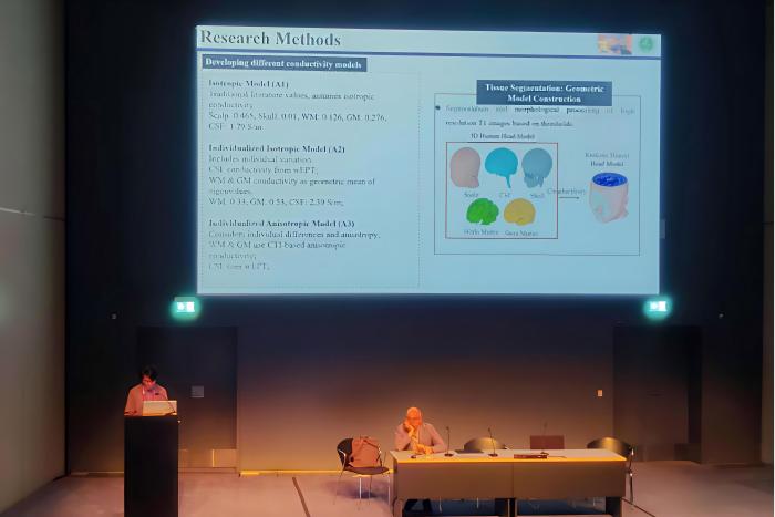 7月14日至17日,2025年第47届IEEE生物医学工程国际会议(IEEE EMBC)在丹麦哥本哈根举行,来自世界各地的专家学者共襄盛会。我校2023级本科生谢德晨以第一作者身份成功向会议投稿论文《基于磁共振电特性张量成像的增强型时域干涉电刺激模型(Enhanced temporal interference stimulation modeling through magnetic resonance conductivity tensor imaging)》,并受邀在大会作报告。生物医学工程学院韩继钧副教授为论文通讯作者,我校为第一作者单位。